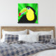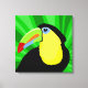 Canvas wrapped prints with toucan art. Contemporary green background suggesting green foliage