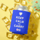 Keep Calm and Carry On in Pop Art Style. Blue background.