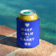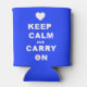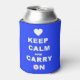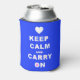 KEEP CALM AN CARRY ON Blue Can Cooler