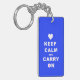 Keep Calm and Carry On in Pop Art Style. Blue background.