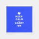 Keep Calm and Carry On in Pop Art Style. Blue background.