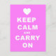 Keep Calm and Carry On in Pop Art Style. Deep Pink background.