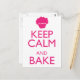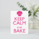 "Keep Calm And Bake". A customised version of the old British propaganda "Keep Calm And Carry On". This statement is available on several products.
