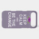 Beautiful muted lavender case with purple lotus flower and text that reads Keep Calm and Be the Change. Be reminded of your spiritual side every day when you see this calming and lovely phone cover. Or give them as gifts to your friends in yoga class. Copyright Scarebaby Design.