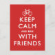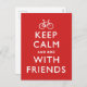 Keep Calm and Bike with Friends. A fun and fitness-orientated variation of the WW2 poster "Keep Calm and Carry On". A white image of a bicycle with white text over red. A happy birthday cyclist funny and cute holiday card!