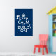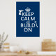 This reads Keep Calm and Build On, in the style of the classic keep calm poster. There are silhouettes of a hammer and power drill around the words. It's a fun eye catching design, perfect gifts for all builders and contractors, or anyone who likes a bit of DIY.