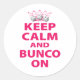 Keep Calm and Bunco On Design. Fun graphic design that will be a hit at your next Bunco event. Purchase one as a prize or gift. Features a crown and three dice. You can change the background colour on most items.