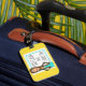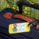 Fun brightly coloured bag tag/luggage tag with a great statement about life and travel. Happy Adventures!
