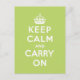 Green and white keep calm and carry on To change size has your taste. This design makes reference to the famous poster appeared during the Second World War.
