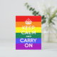 Keep Calm and Carry On vintage-style design against a rainbow design.