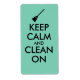 It says Keep Calm and Clean On. You can change the words and add your own text in the template to personalise, if you want.
