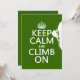 This reads Keep Calm and Climb On, in the style of the classic keep calm poster. There is a rock climber climbing to one side of the words. It makes a beautiful range of products, popular with anyone who loves to climb.