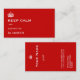 Keep Calm business card with the British crown and a dash of humour. . The white graphic image comes against red background . . Personalise both sides with your own personal or business details . By Alma Wad .It comes 100 per pack .