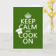This reads Keep Calm and Cook On, in the style of the classic keep calm poster. The C of Cook is wearing a chef's hat. It makes a fun range of gifts, perfect for anyone who loves to cook or bake.