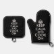 Keep calm and cook on funny black Oven Mitt & Pot Holder Set. Modern typography with crown. Create your own funny parody with this meme template. One of kind kitchen gift ideas for chef cook.