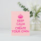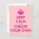Hello and welcome, create and customise your own "keep calm" design for this one is unique! Replace the words "keep calm and create your own" by the word of your choice and choose the background colour you want! You can imagine and do everything!! ex: "keep calm and carry on" "keep calm and dance on" "keep calm and love me" ... have fun, let your creativity! If you have a problem, do not hesitate to contact me: grafik.prod@gmail.