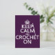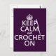 This reads Keep Calm and Crochet On, in the style of the classic keep calm poster. There is a crochet hook leaning against the letters. It's a beautiful design, which will thrill anyone who loves to crochet. Perfect for knitters and crocheters everywhere, great gifts for your knitting group or as merchandise in your knitting shop.