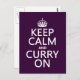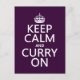 This reads Keep Calm and Curry On, in the style of the classic keep calm poster. It's a clean simple design, perfect for everyone who loves curry and spice.