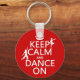 This reads Keep Calm and Dance On, in the style of the classic keep calm poster. There are two dancers dancing on top of the letters. It's a beautiful design, which makes great gifts for dance teachers, dancing groups, or anyone who loves dance.