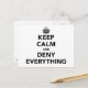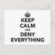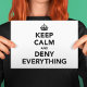 Keep Calm and Deny Everything. A sound strategy - certainly works for me! Based on the popular Keep Calm and Carry on meme.