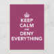 Keep Calm and Deny Everything. A sound strategy - certainly works for me! Based on the Keep Calm and Carry on design