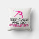 Gymnastics pillow "Keep Calm and Do Gymnastics"... the text is in black and pink and it has a gymnast silhouette.