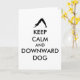 When the going gets tough, the tough get stretchy. Keep calm with this yoga item featuring a downward dog pose.