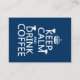 This reads Keep Calm and Drink Coffee, in the style of the classic keep calm poster. There are coffee cups balancing on the words. With a companion tea version available in my store, it makes beautiful decorative items for any coffee shop, cafe or restaurant. Also great gift ideas for coffee lovers.