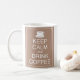 A funny take on the "KEEP CALM" WWII saying. Keep calm and continue to drink your coffee. Everything will be okay.