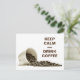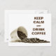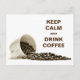 Photography of a cup with brown coffee beans on a white background with the text Keep Calm and Drink Coffee on it.