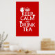 This reads Keep Calm and Drink Tea, in the style of the classic keep calm poster. I've added a posh teapot and delicate tea cups sitting on the words. It adds an extra british element to the ultimate british sentiment. It's a fun and cute design, and makes wonderful gifts for anyone who loves tea, or as decor for tea shops / coffee shops / cafes and the like.