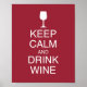 Dark red wine glass "Keep Calm and Drink Wine" design is a parody of the "Keep Calm" WWII era poster.