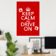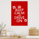 This reads Keep Calm and Drive On, in the style of the classic keep calm poster. There are two L plates beside the words. It's a wonderful design, and makes great cards and gifts for learners and driving instructors alike.