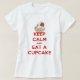 Keep Calm and Eat a Cupcake. Cupcakes will make you happy. A cupcake with a chocolate cookie in a fluted paper cup. Classic red Keep Calm font.