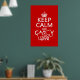 This reads Keep Calm and Eat Candy, in the style of the classic keep calm poster. The final words have been added as though on a sticker or a stamp over the original. A fun and humourous design, great for anyone who loves candy.