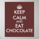 Make customised keep calm posters with this template. It has the keep calm crown logo in white and words in white letters. It says Keep Calm and Eat Chocolate.