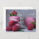 A beautiful elegant photo of raspberry macarons, fresh raspberries and mint leaves. Words "Keep calm and eat macarons"
