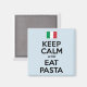 Keep Calm And Eat Pasta fridge magnet. This magnet features the flag of Italy. A great design for an Italian kitchen or any pasta lover. There's nothing a big bowl of pasta can't solve! Great for Nonna or Nonno's kitchen.