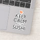 Keep Calm And Eat Sushi. This funny sushi lover accessory is a great sushi lover gift for a man, woman, girls, boys, teens & kids who love to eat sushi & sashimi at Japanese restaurants, and love wasabi, ginger and soy sauce. If you love Japanese food, and eating tuna maki rolls and nigiri sushi with vinegared rice, this sushi lover accessory is for you!