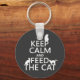 This is the classic "Keep Calm and Carry On" war poster reworded to "Keep Calm and Feed The Cat". It's written in white with a background colour that you can change as you please. I've kept the crown at the top, but added silhouettes of cats sitting on and near the letters.