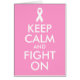 Pink and white customisable "Keep Calm and Fight On" design for Breast Cancer Awareness Month.