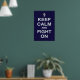 Keep Calm and Fight On! This is a parody of the British phrase "Keep calm and carry on". There is a fist instead of the crown. This is a take on that with a rebellious twist.