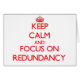 Use the search tool at my store to find other Redundancy merchandise. Keep Calm and focus on Redundancy products available on tshirts,sweatshirts,kids shirts, infant onsies, stickers, magnets, and much more Redundancy clothing fully customisable to your specifications. If you like what you see, please link to my store (www.zazzle.com/shirtsforall) or email a friend.