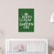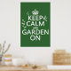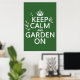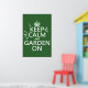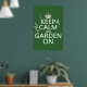 This reads Keep Calm and Garden On, in the style of the classic keep calm poster. Leaves are growing from the letters. It's a beautiful simple design which makes a beautiful range of products for the gardener in your life.