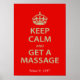 Keep Calm and Get a Massage, and Keep Calm and Get Reiki. In the tradition red and tan combination, or with green text or crisp white so you can choose any background you like. Perfect poster for your massage studio, reiki healing centre, or spa salon. Add your name or company to personalise. Based on the classic WWII Keep Calm and Carry On posters in England.