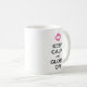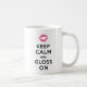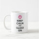 Our take on the classic WWII slogan features "keep calm and gloss on" topped by a vibrant pink lip print kiss illustration.