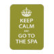 Our take on the classic WWII poster reminding the English to keep calm and carry on during the Blitz, we simply say, "Keep calm and go to the spa"! Relax, rejuvenate, and have a laugh while you get a massage or salon treatment! Makes a great gift for your salon customers or your massage therapist. In crisp white so you can place it on any background colour. Play around with all the colours!