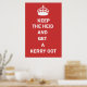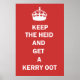 Keep Calm and Carry On is one of the most famous British poster slogans from the Second World War and is now enjoying a revival in these tough times. Our fun poster print for Scots shows an alternative take on the famous British World War 2 home front poster saying. Ours is in Glaswegian and reads: "Keep the Heid and Have a Kerry Oot." Keep the Heid is Glaswegian for Stay Calm, and Kerry Oot is Glaswegian for a carry out of booze. In bright red with white lettering and a regal crown, it makes a fun poster design.