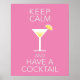 text reads :"Keep Calm And Have A Cocktail" with a retro cocktail glass and slice of lemon.