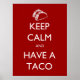 Keep Calm and Have A Taco! Based on the iconic WWII-era "Keep Calm and Carry On" poster, this humourous parody features a pair of tacos instead of the crown. BTW, you can change the background colour by clicking the "Customise It" button and using Zazzle's edit tools.
